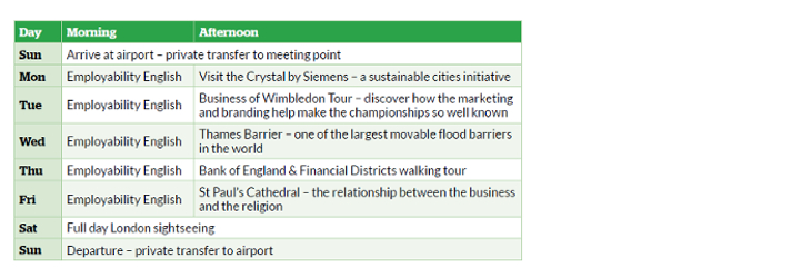 I ragazzi trascorreranno dei momenti irripetibili alla scoperta dei luoghi e dei monumenti che caratterizzano la località dove effettueranno lo stage. Nel corso del soggiorno infatti si svolgerà un primo orientation walking tour della città ospitante e, in base al programma selezionato, saranno previste visite comprensive di ingressi alle attrazioni della città ospitante oltre ad un’escursione di intera giornata a settimana in pullman privato. Tutte le escursioni prevedono la presenza dell’accompagnatore dall'Italia e dello staff locale madrelingua. Il programma potrebbe subire delle leggere modifiche per motivi organizzativi che non alterano la natura del programma stesso.